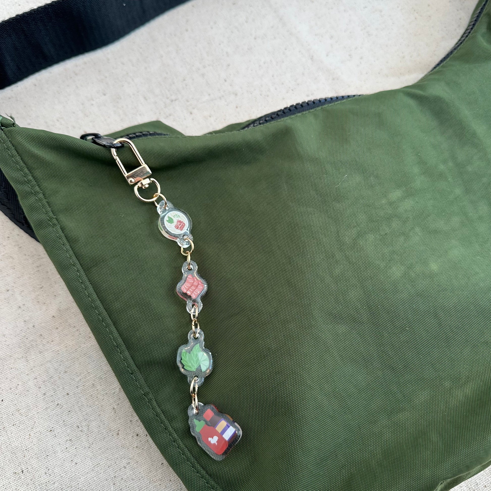 Add a dash of pho charm to your keys, bag, backpack, and more with our linked pho keychain featuring the favorites: meat, veg, and hot sauce/hoisin sauce! 🤤